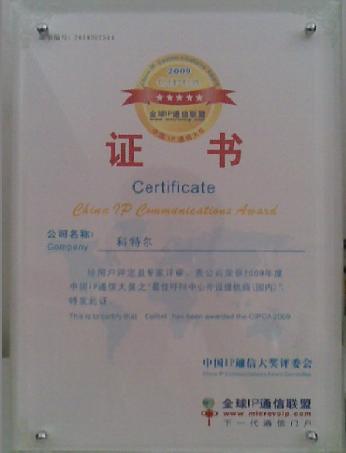 特尔(CALLTEL)荣获2009年度中国IP通信大奖之“最佳呼叫中心外设提供商(国内)”。